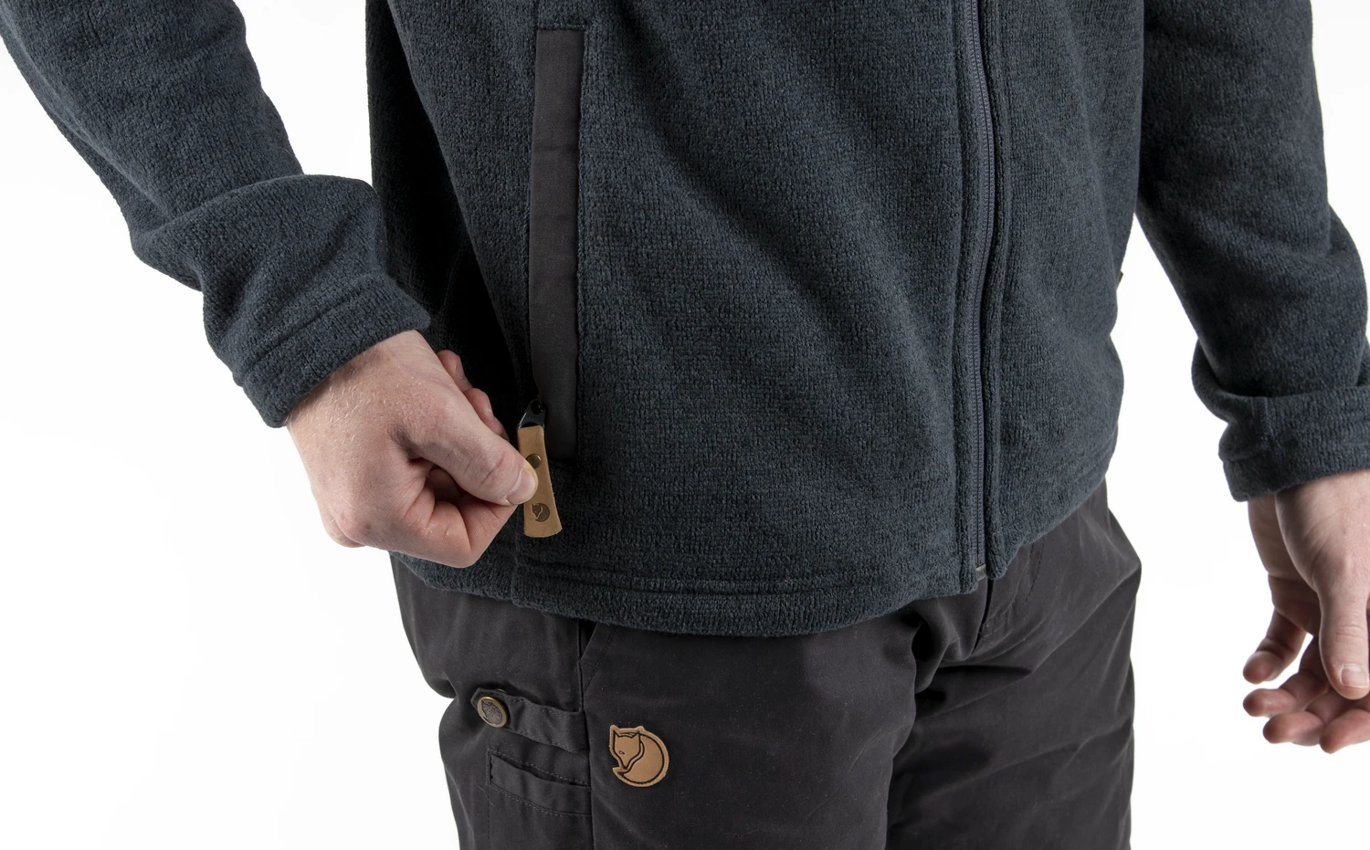 Strick-Fleecejacke in weiter Passform. G-1000®-Verstärkungen im Schulterbereich, eine Brusttasche und zwei Eingrifftaschen.