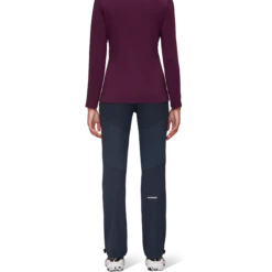 Die hochwertige Hybrid-Softshellhose Courmayeur Pants wurde speziell für Bergsportlerinnen entwickelt. Ihr hoch atmungsaktives, elastisches und windabweisendes Schoeller® Softshellmaterial sorgt für Vielseitigkeit, Tragekomfort und optimale Bewegungsfreiheit. In Bereichen wie dem Gesäß, den Knien und den unteren Beinpartien verwendet sie ein widerstandsfähigeres Double-Weave-Material, das besonders abriebfest ist und auch beim Kontakt mit Fels Beständigkeit zeigt. Die individuell von außen verstellbare Taillenbundverstellung ermöglicht eine perfekte Passform. Praktisch beim Bergsteigen und Klettern sind die Taschen, die auch mit Klettergurten mühelos erreichbar sind. Dank ihrer PFC-freien Imprägnierung bleibt die Courmayeur SO Pants langfristig schmutz- und wasserabweisend.