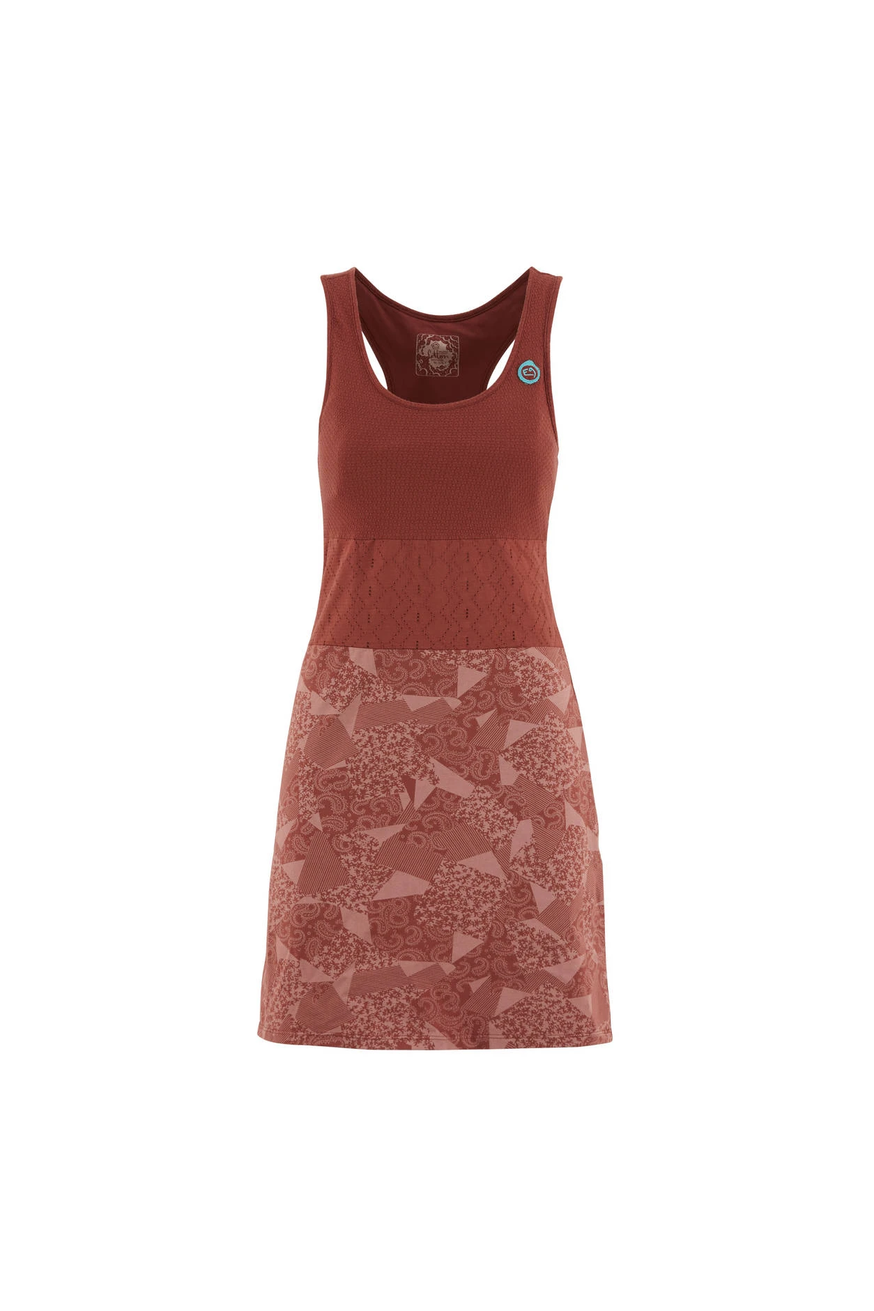 Kleid aus Bio-Baumwolljersey und Jersey-Jacquard. Ein perforierter Bund. Outdoor- und Kletterkonzeptlinie. Stickerei auf der Herzseite. Guter Komfort. Normale Passform. Hergestellt in Italien.